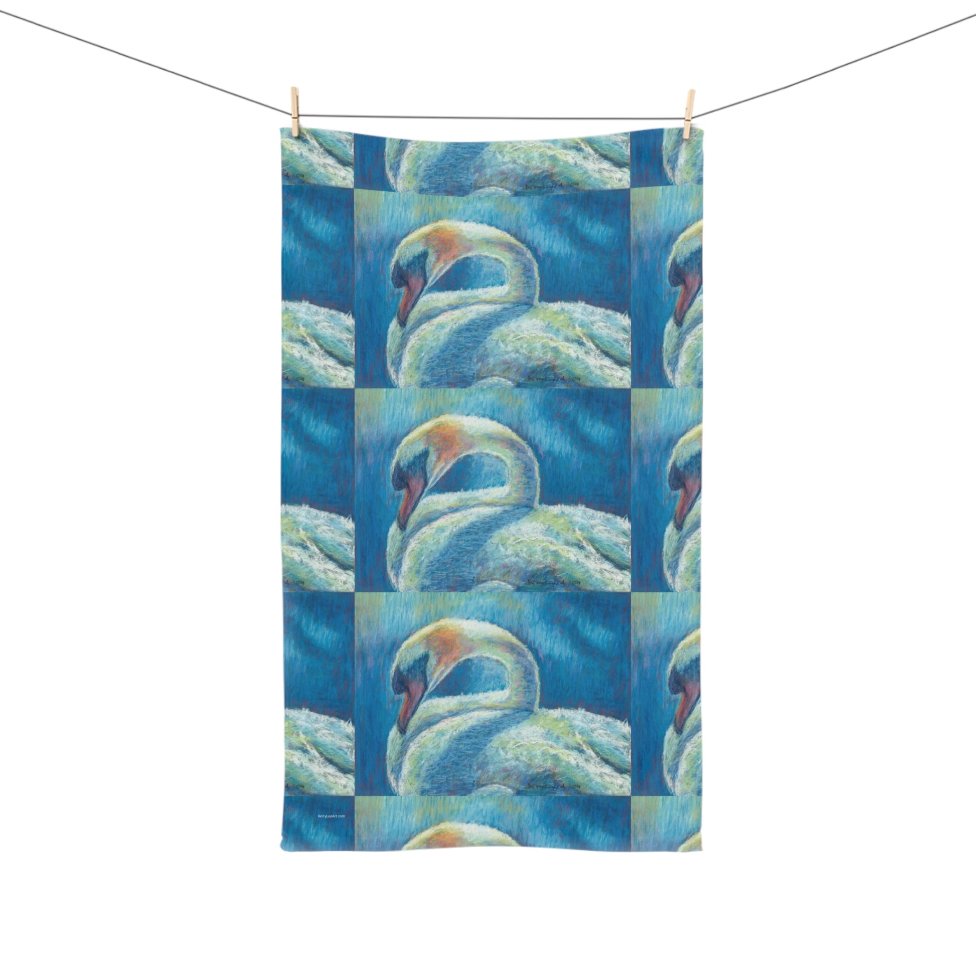 Enhance any kitchen or bathroom area with a custom tea towel / hand towel that adds character to its surroundings. Velour front and white terry back features a reproduction of a Kerry Lee painting "Serenity Swan". This premium towel is soft, thick, and lush premium quality and adds practical and beautiful art to your home!